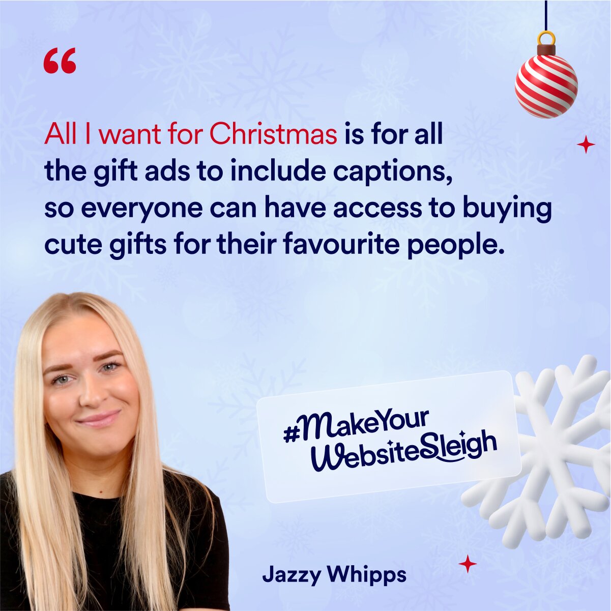“All I want for Christmas is for all the gift ads to include captions, so everyone can have access to buying cute gifts for their favorite people.”